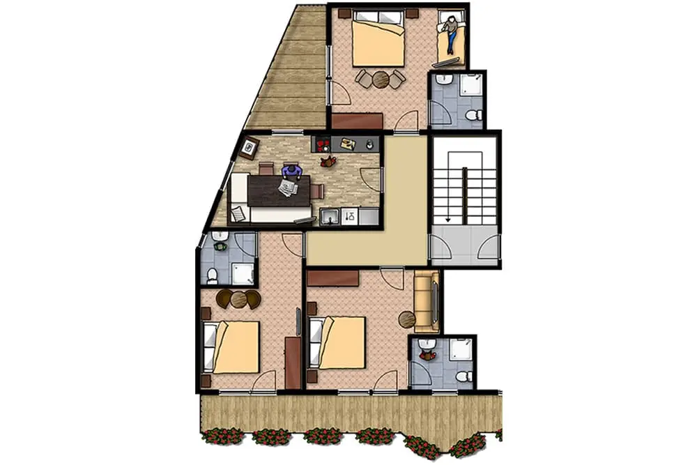 Sie vefügen über 3 Schlafzimmer mit jeweils Dusche/WC am Zimmer.