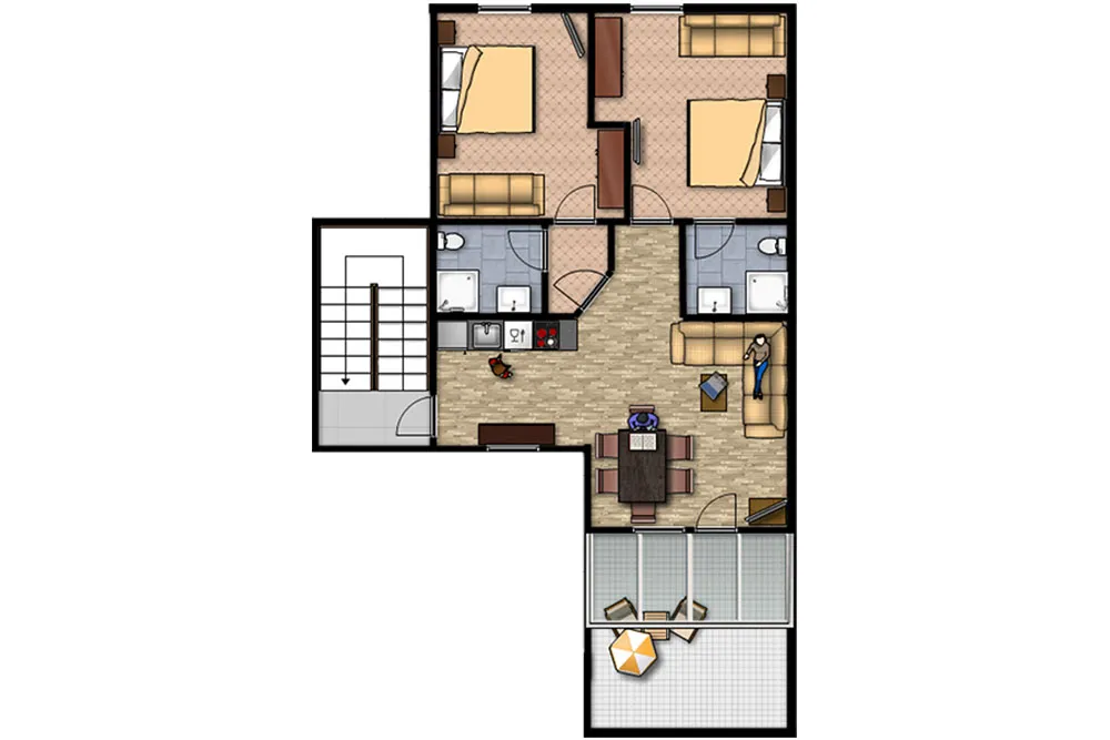 2 Doppelzimmer mit Wohnbereich für 4–6 Personen
