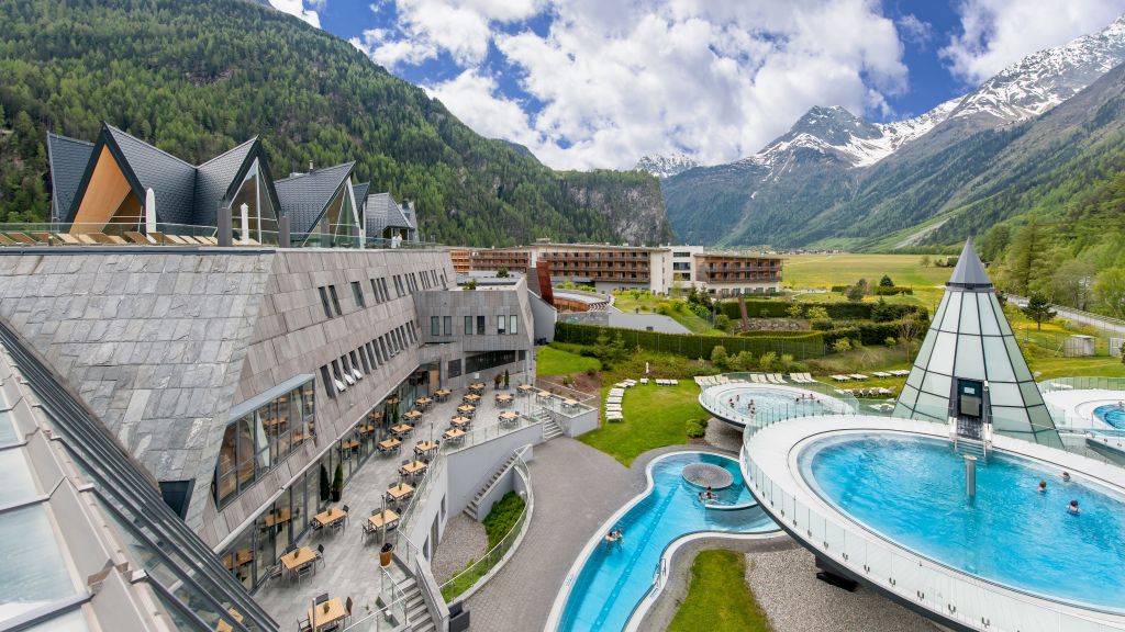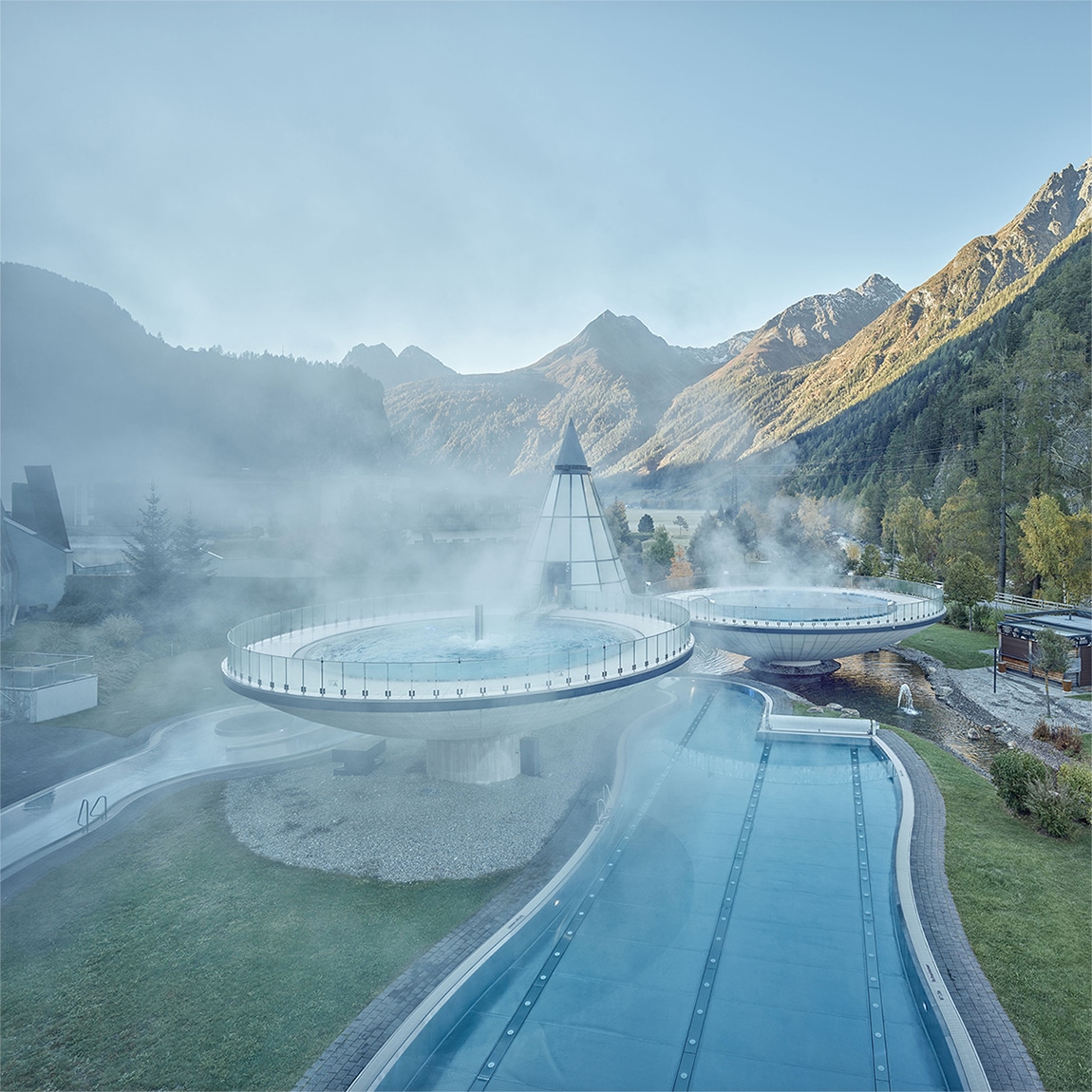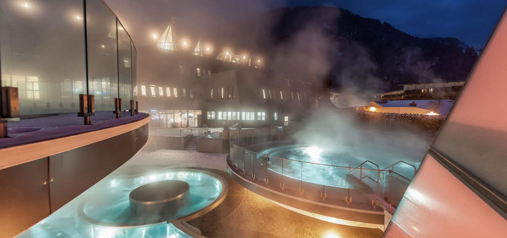 Erleben Sie im Aqua Dome das reine Wohlbefinden in den 2 Innenbecken mit 34° C und 36° C warmen Wasser, das von den imposanten Höhen der Gletscher durch das Gestein hinabrinnt und dann aus rund 1.800 m Tiefe als Thermalwasser heraussprudelt.