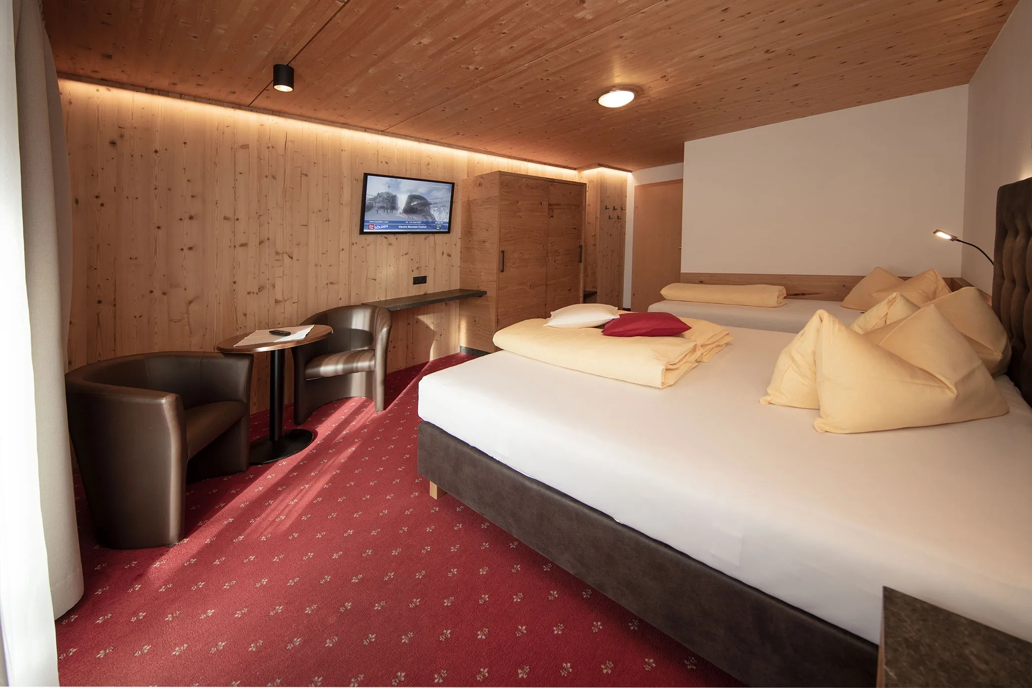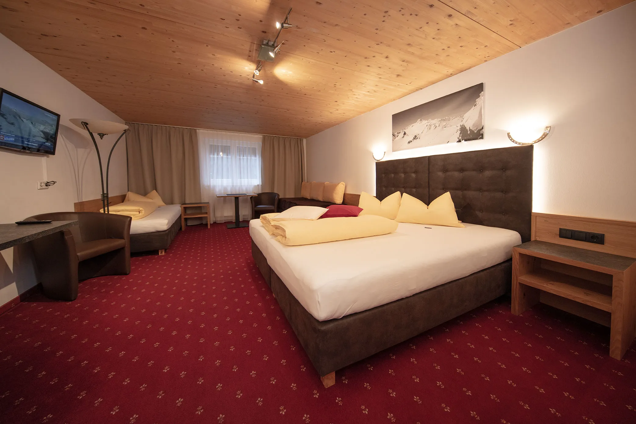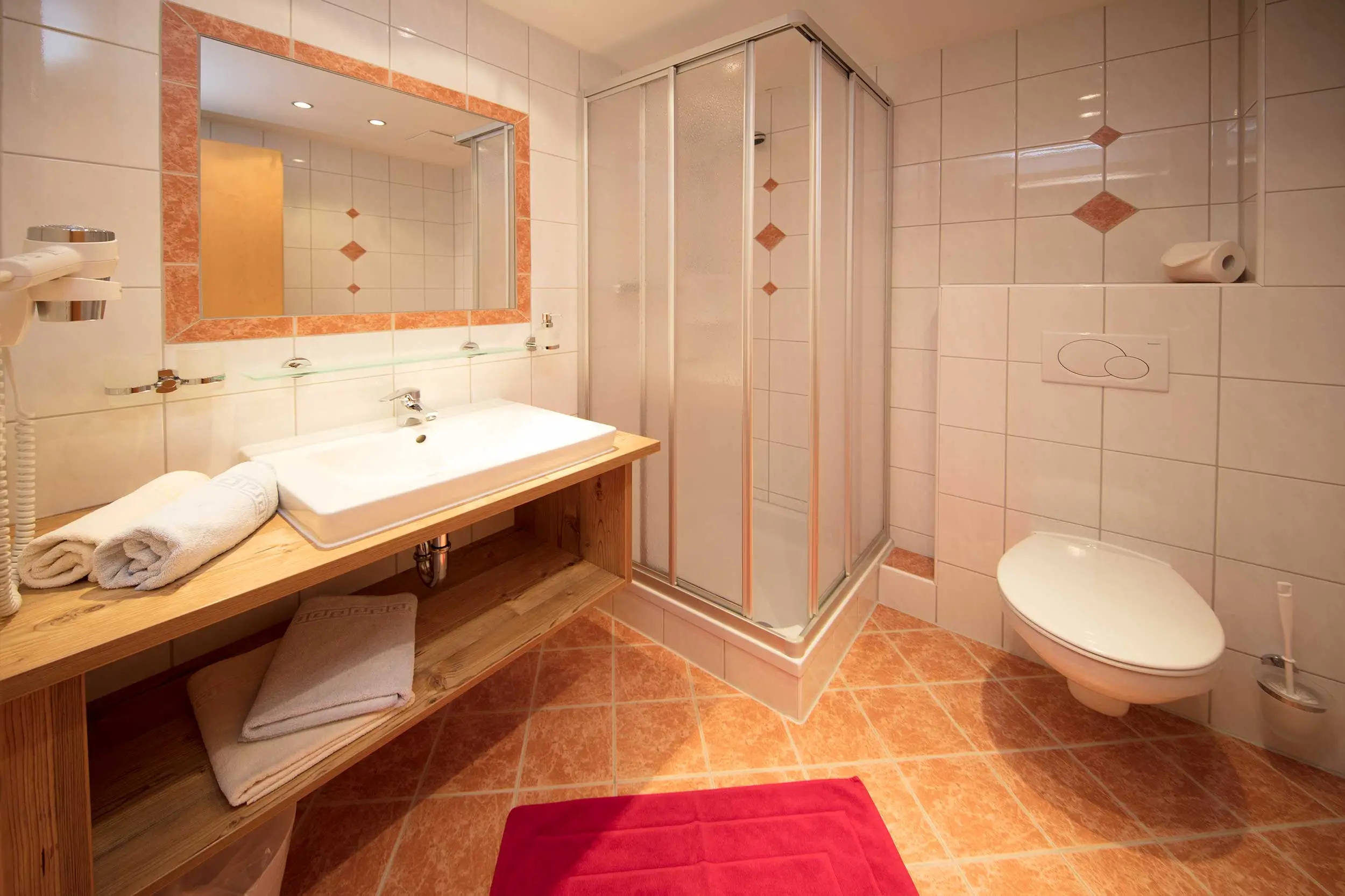 Die Zimmer der Kategorie A sind großzügig und behaglich eingerichtet, teilweise mit Sonnenterrasse oder Balkon. Flate-TV mit Kabelanschluss und freies Internet über W-Lan. Eine komfortable Dusche/WC mit Haarföhn.